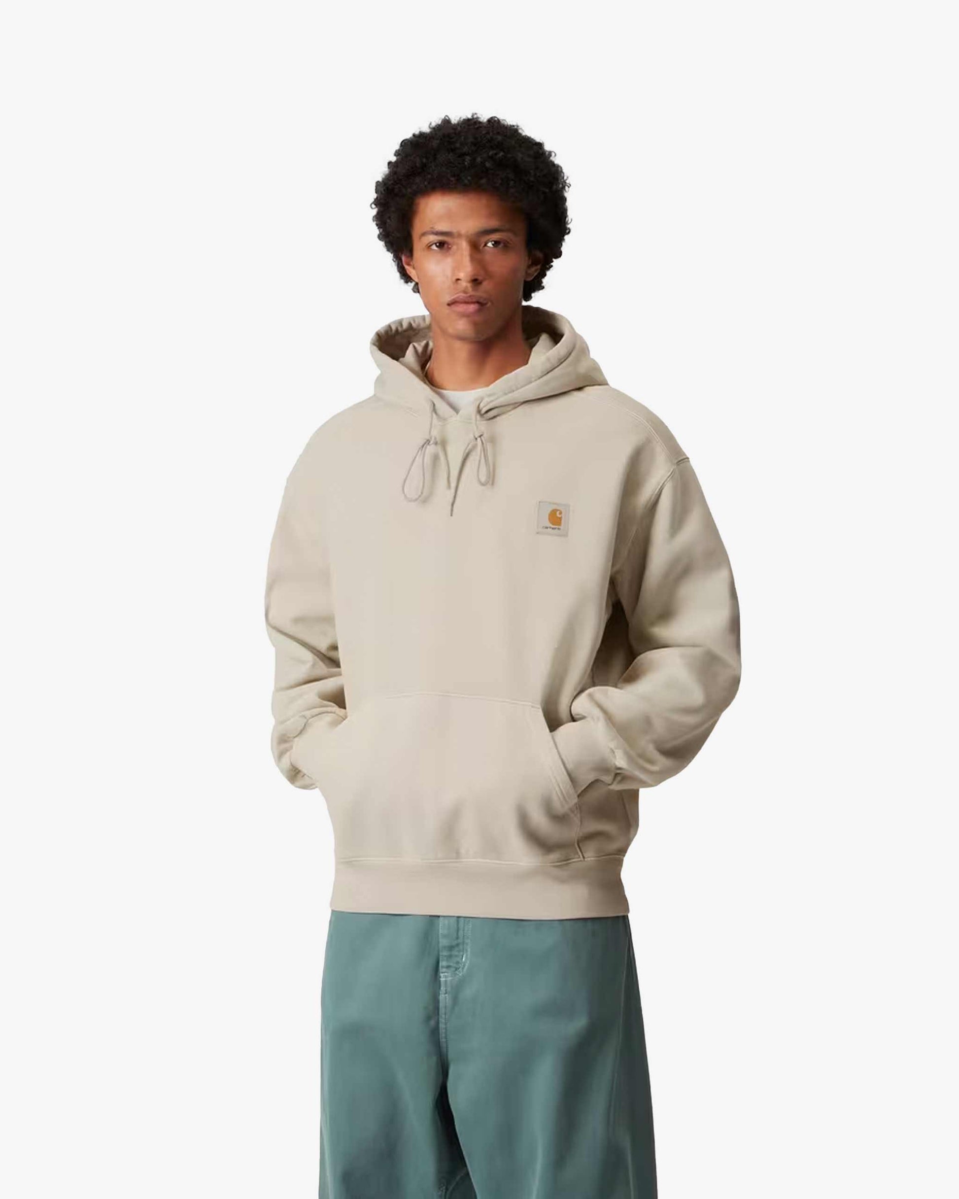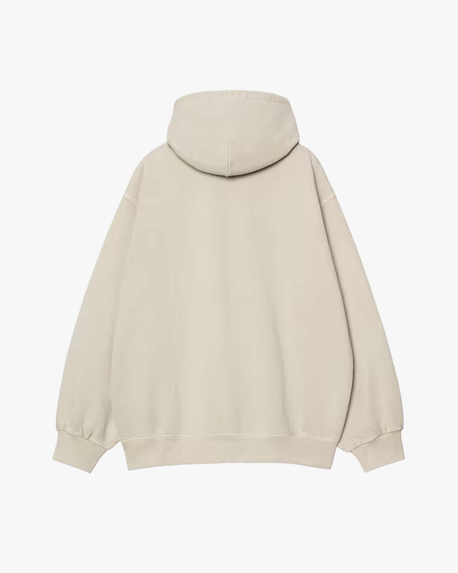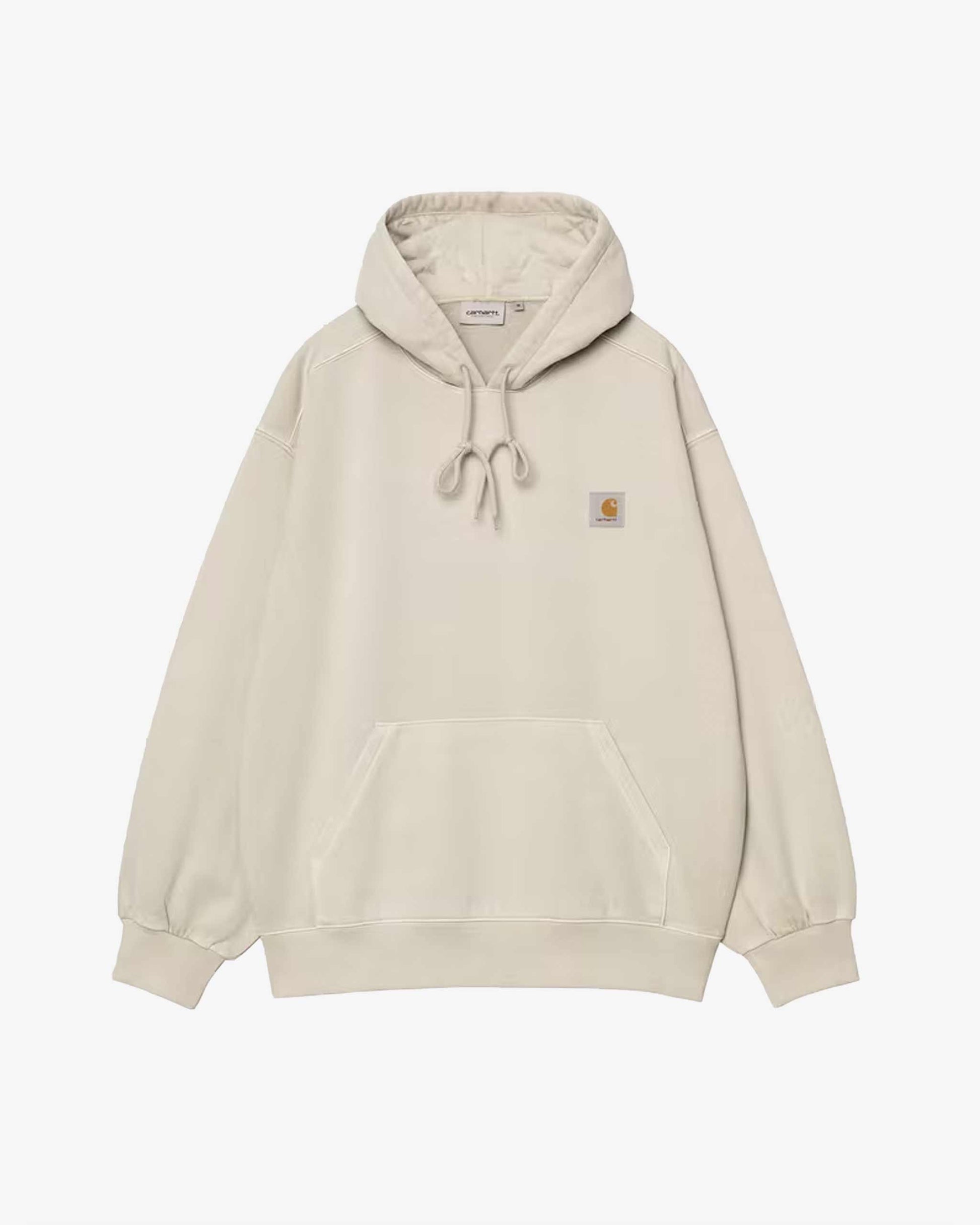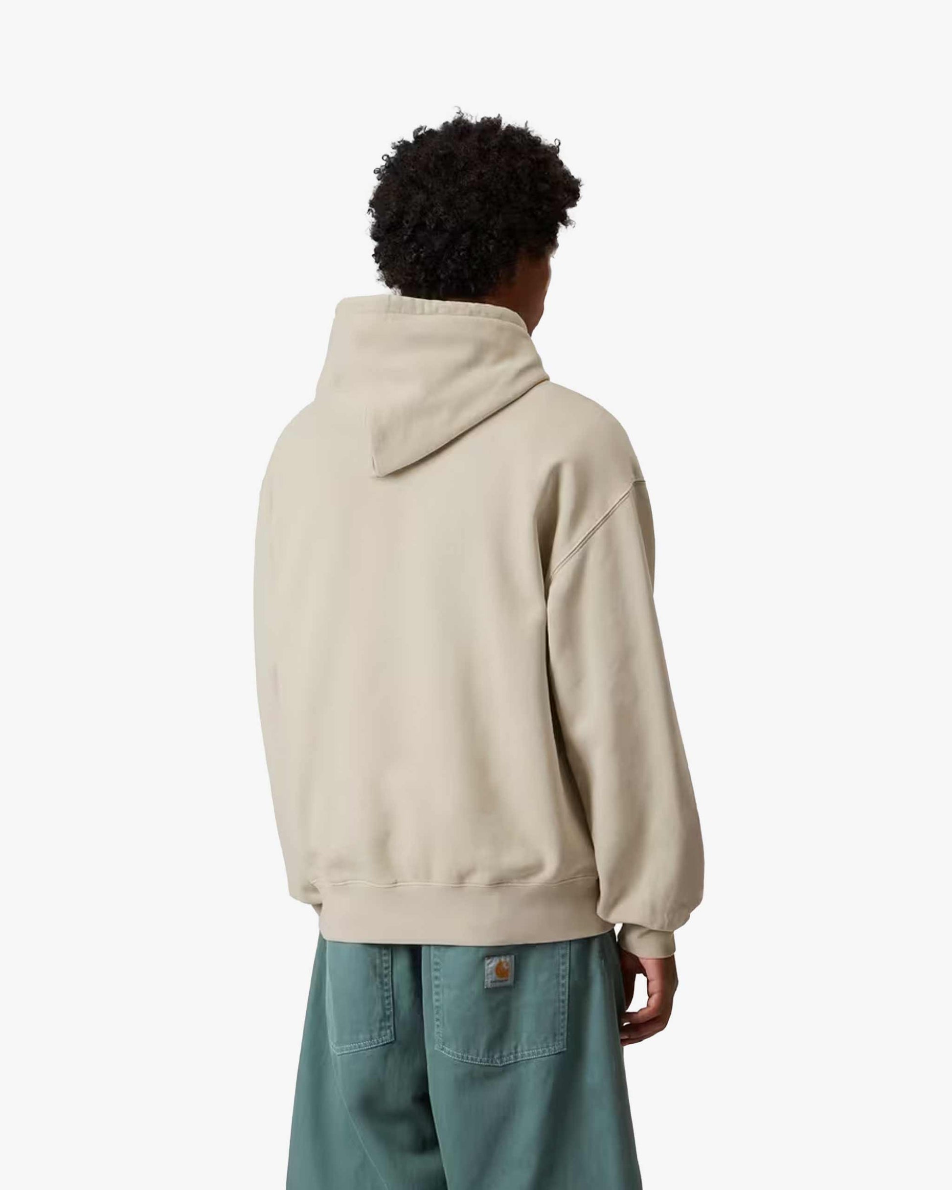 La Hooded Vista Sweatshirt está confeccionada en punto grueso de algodón cepillado, ofreciendo un tacto suave y un acabado de forro polar. Ha sido teñida con pigmentos para lograr un color intenso y saturado. Presenta un corte balloon, ligeramente cuadrado con hombros caídos, capucha ajustable enguatada y acolchada, y bolsillo tipo canguro. Una etiqueta cuadrada sobreteñida completa el diseño.