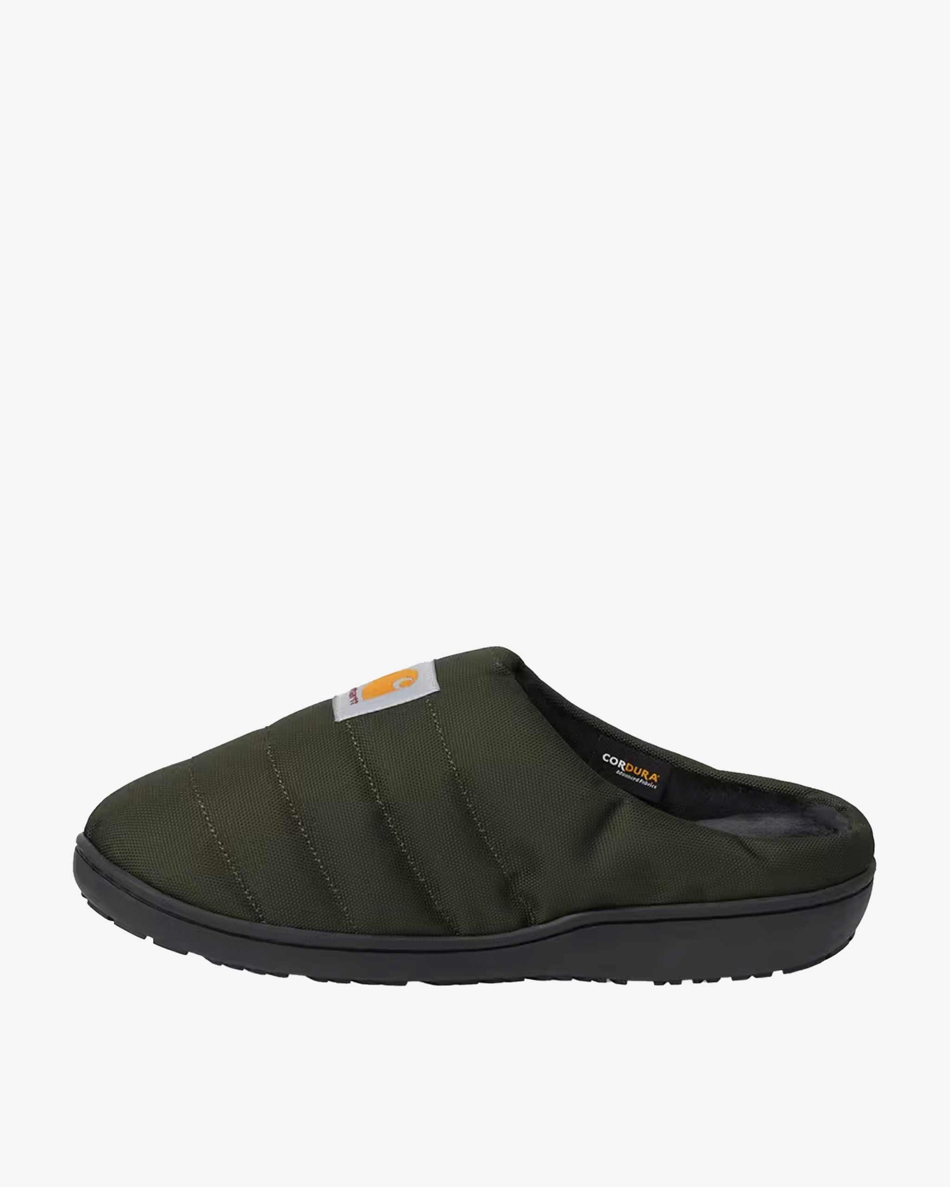 Las Cordura® Slippers están confeccionadas en poliéster Cordura® reciclado, en colaboración con la marca japonesa Subu. Su diseño combina resistencia y confort, gracias a un acolchado de cuatro capas tipo almohada que aporta una sensación envolvente y cálida. El empeine ignífugo garantiza durabilidad y seguridad, mientras que la bolsa de transporte a juego añade un toque práctico para el día a día o los viajes. Una etiqueta cuadrada tejida completa el diseño.